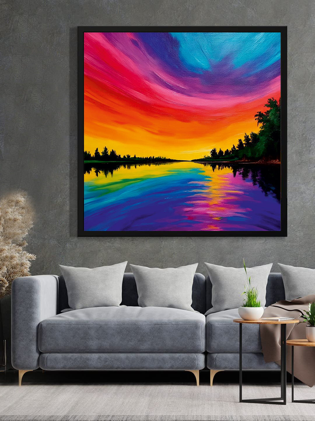 The Colorful Horizon Canvas Wall Art, presented in a sleek black frame, brings vibrant energy and depth to any room. This expertly stretched painting showcases a dynamic blend of colors, capturing the awe-inspiring beauty of a horizon at dusk or dawn. Its contemporary framing ensures durability while complementing modern decor styles, making it a striking focal point for your living space or office.