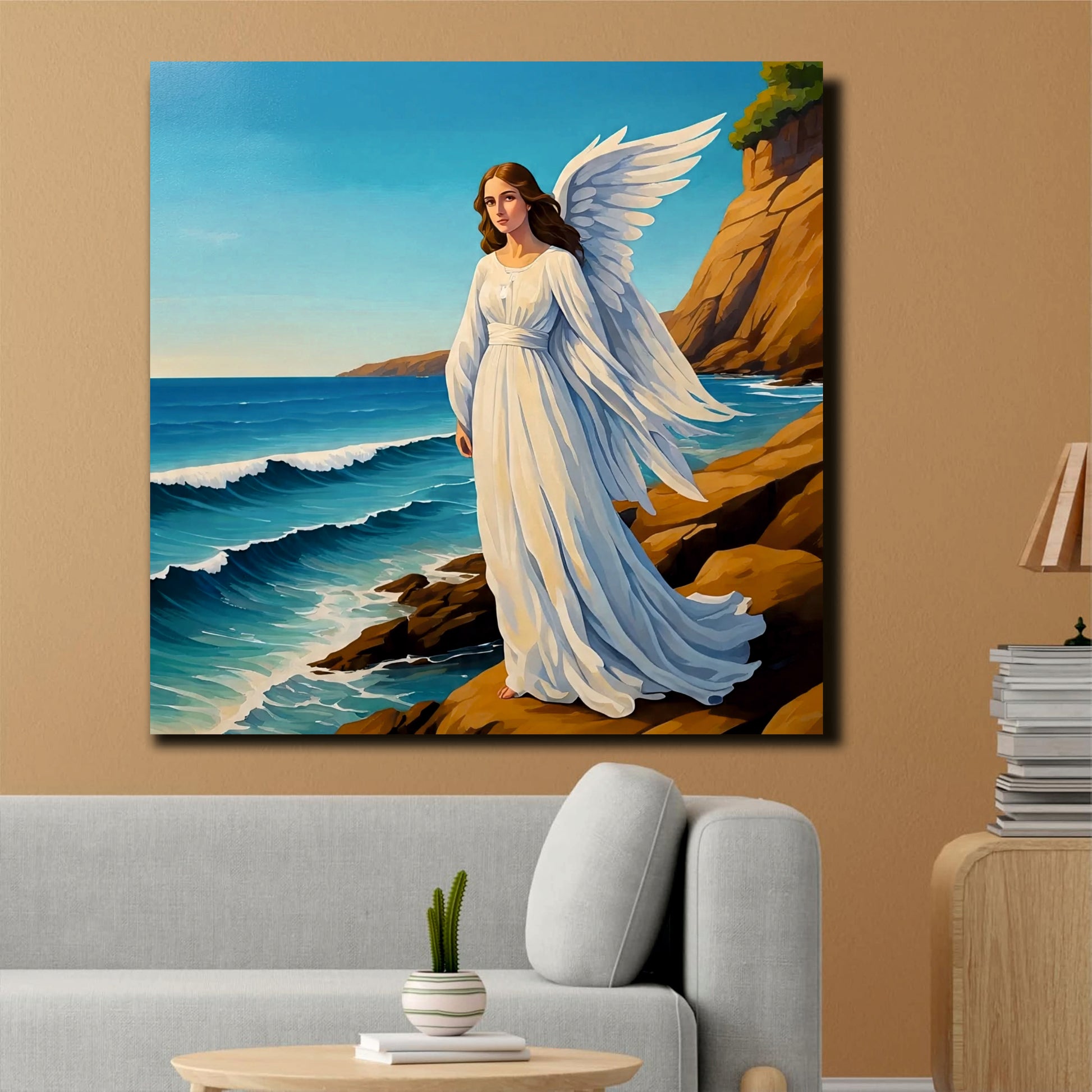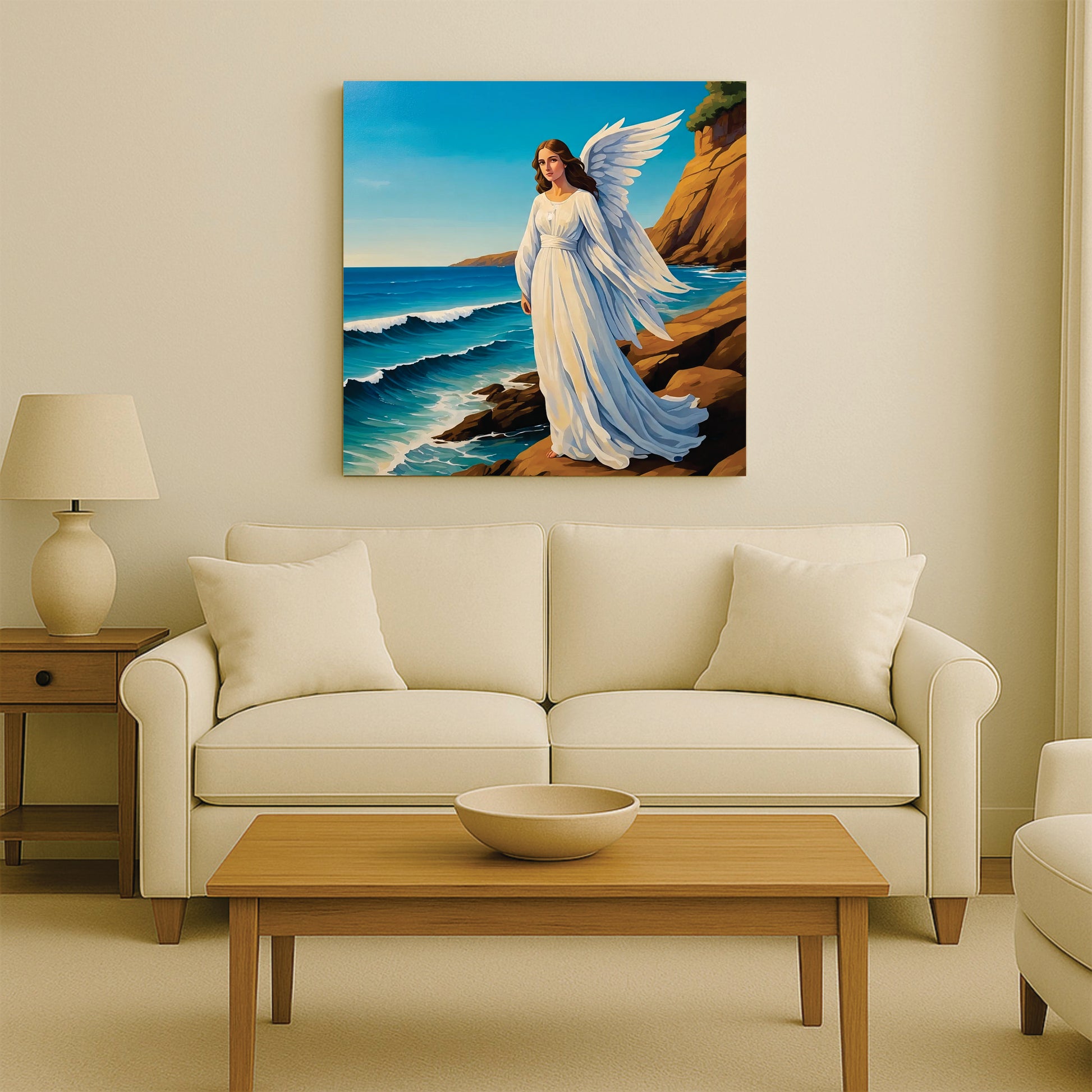 Guardian of the Waves – Angel by the Sea Canvas Wall Art Stretched Frame Painting