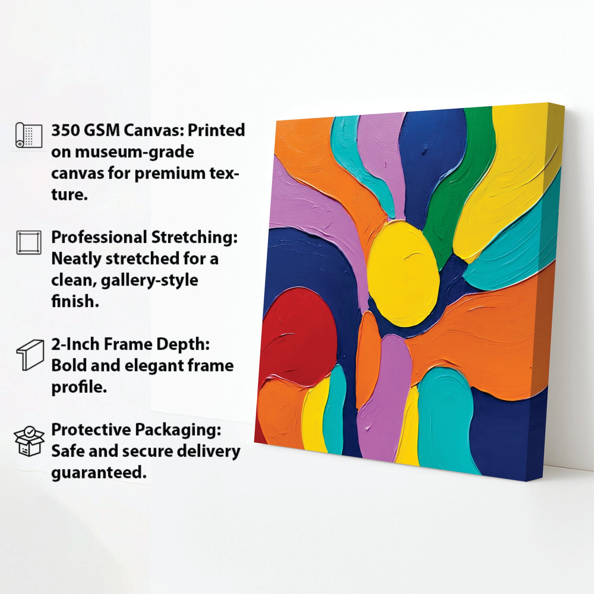 Infinity of Colors – Abstract Wall Décor Canvas Wall Art Painting showcases a dynamic interplay of vibrant hues and fluid forms, expertly designed to invigorate any space. This piece offers a harmonious balance between bold expression and sophisticated artistry, making it a perfect addition for those seeking to enliven their interiors with a modern and impactful visual experience.