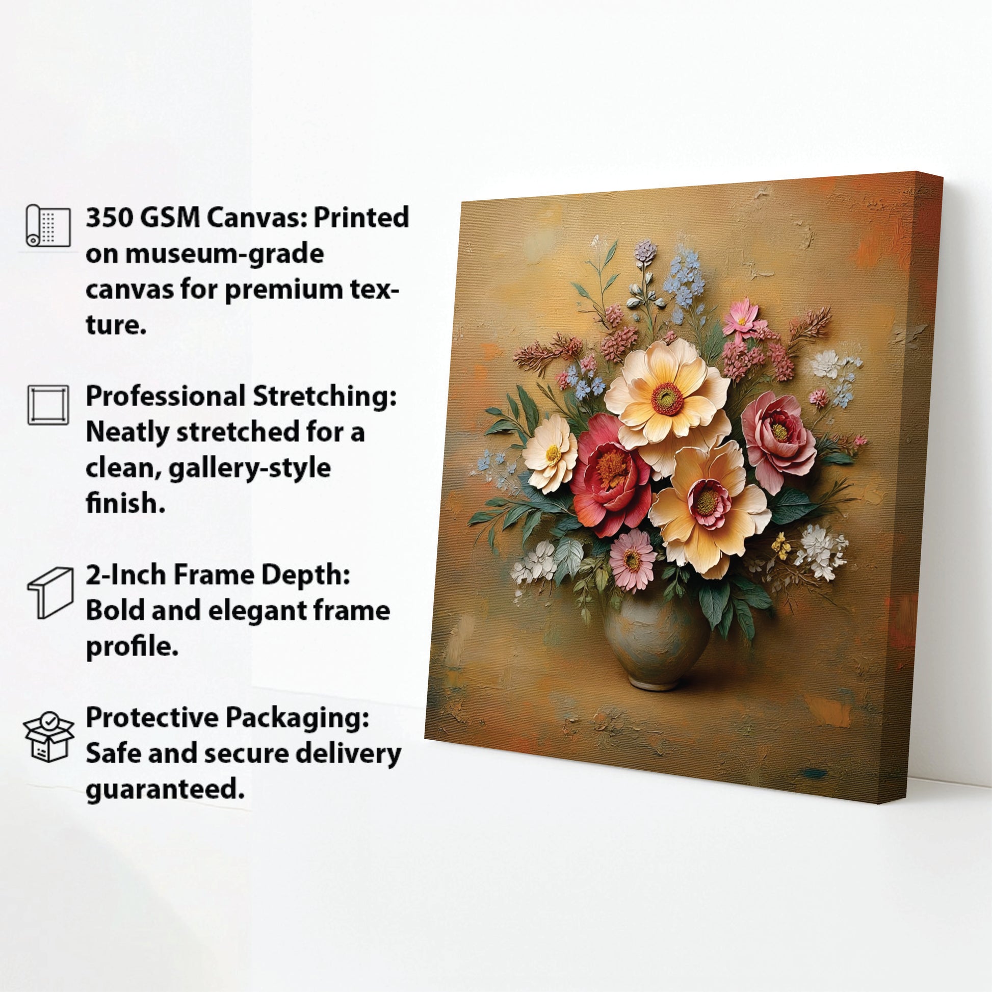 Rustic Floral Texture Canvas Stretched Frame Wall Decor – Handcrafted Artistic Painting