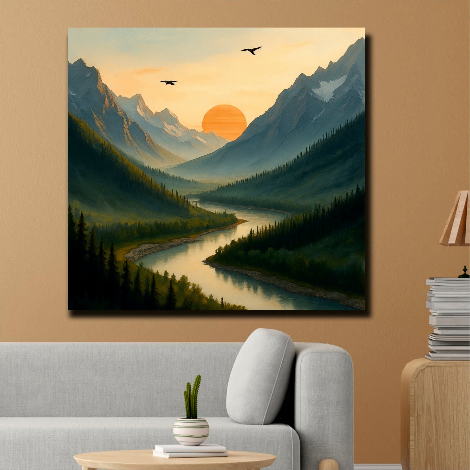 The Sunset Valley Studio Canvas Wall Art Painting expertly captures the warm, tranquil hues of a valley at dusk. This piece blends rich, sunset-inspired colors with detailed textures, creating a serene and inviting atmosphere. Printed on high-quality canvas, it ensures lasting vibrancy and durability, making it a sophisticated addition to elevate any interior with subtle natural beauty.