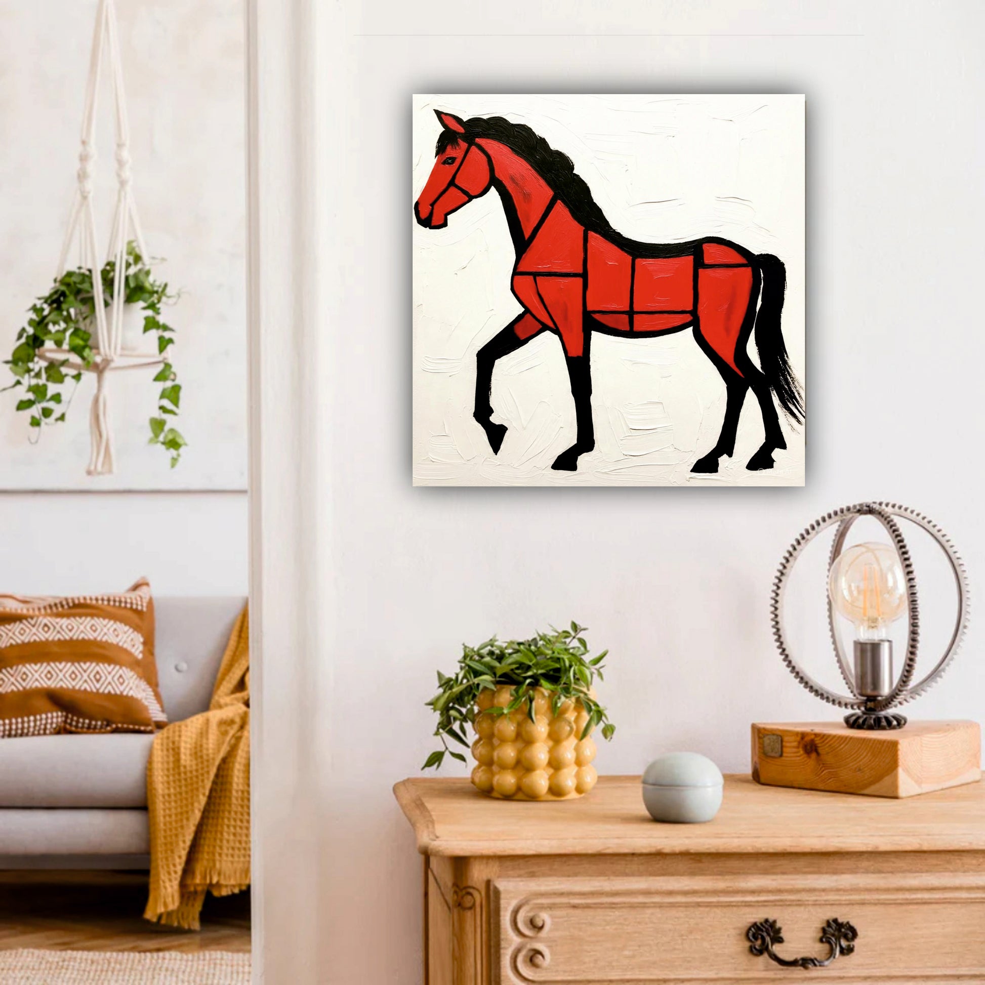 This striking canvas wall art features a vivid red horse set against a clean white background, creating a bold and dynamic centerpiece for any room. Expertly crafted, the painting balances vibrant color with minimalist design, making it ideal for modern interiors seeking a touch of movement and elegance. The high-quality canvas ensures durability and vivid color retention, enhancing your space with lasting artistic appeal.