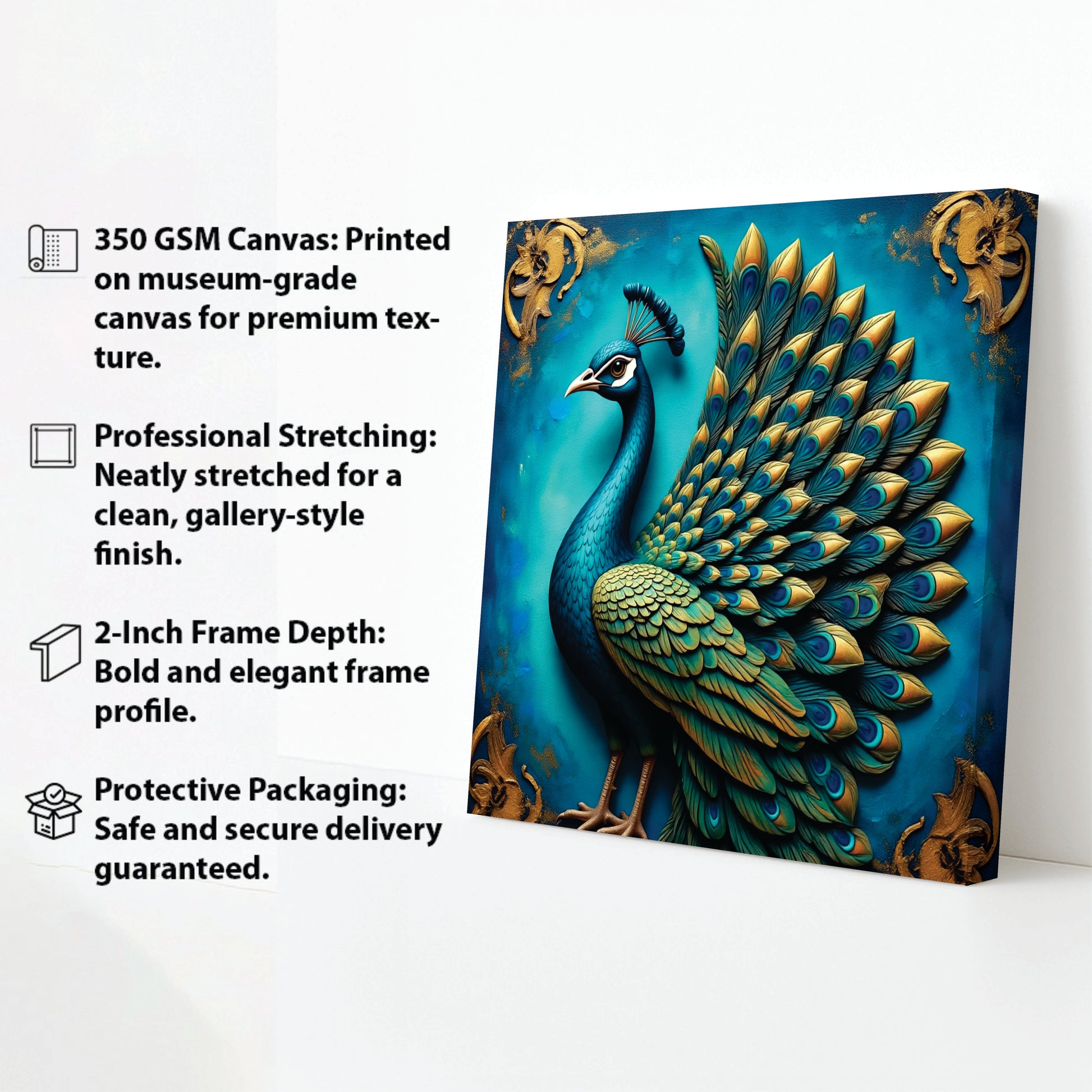 Vibrant Peacock Wall Décor for Modern Homes Canvas Wall Art Stretched Frame Painting